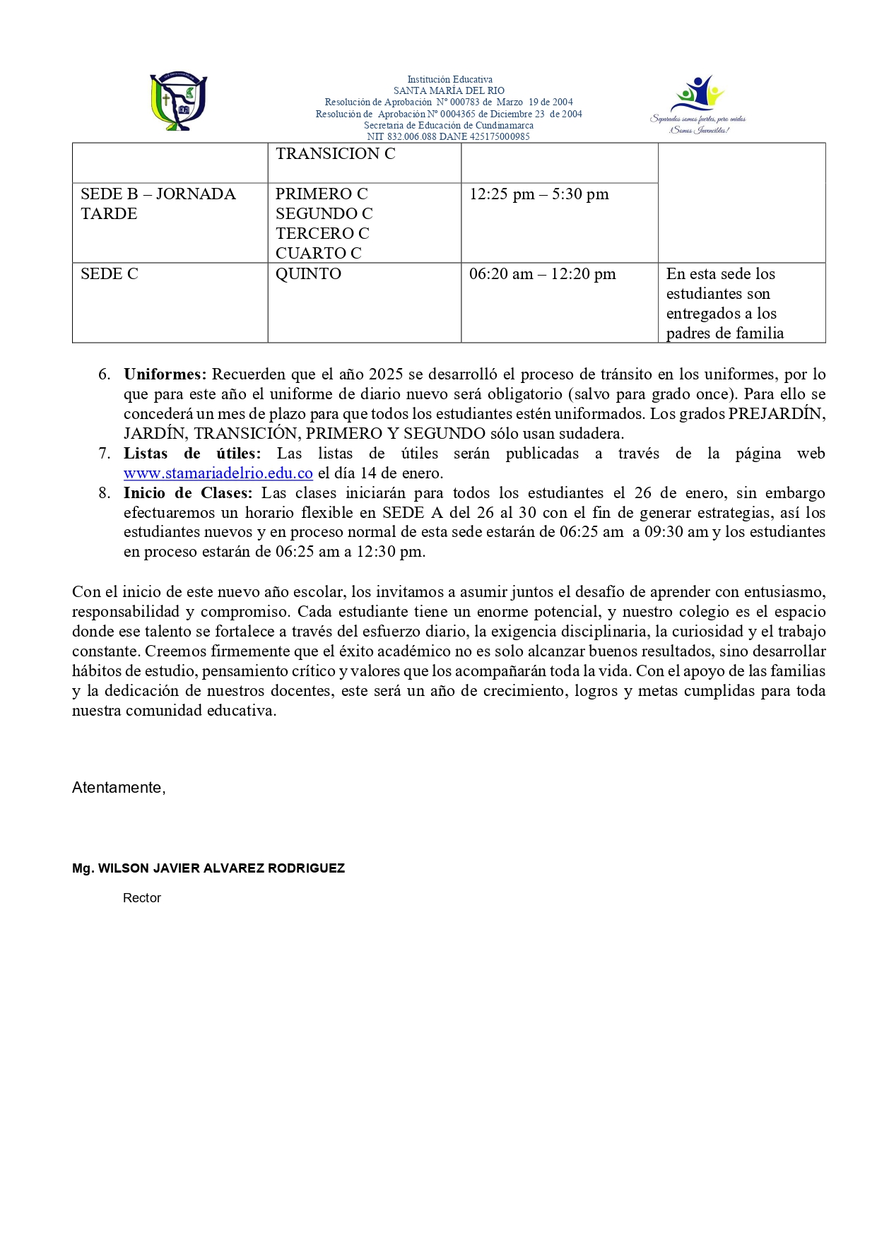 Transición Jornada Tarde: 12:30 pm – 4:30 pm